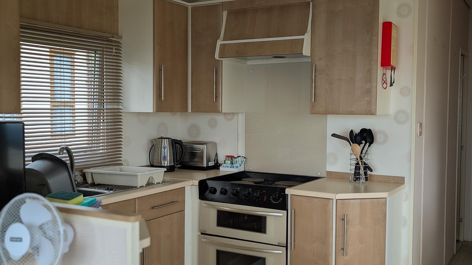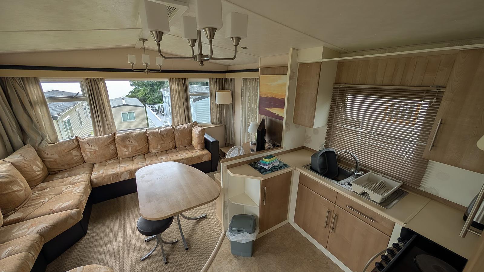 The Beehive has lovely sea views and boasts a generous living area, a well equipped kitchen, a bathroom, and two bedrooms, including a master king-size bedroom and a double. Although not as modern as some of our newer mobile homes, The Beehive offers a charming traditional atmosphere and is dog-friendly, so your four-legged friend is welcome to come along!